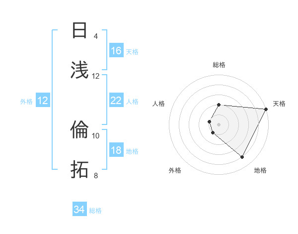 日浅 倫拓さんの総格は34画の2点!