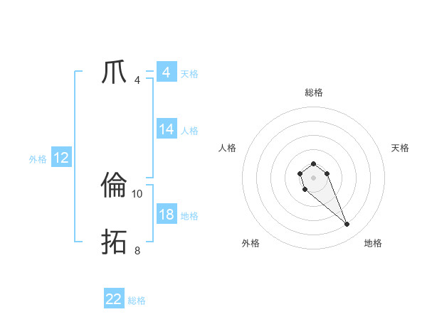 爪 倫拓さんの外格は12画の1点!