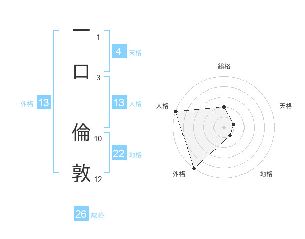 一口 倫敦さんを姓名の画数から五運を鑑定