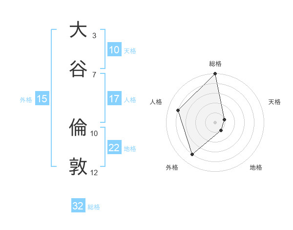 大谷 倫敦さんを姓名の画数から五運を鑑定