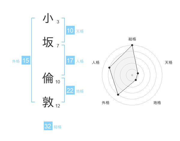 小坂 倫敦さんの総格は32画の5点!