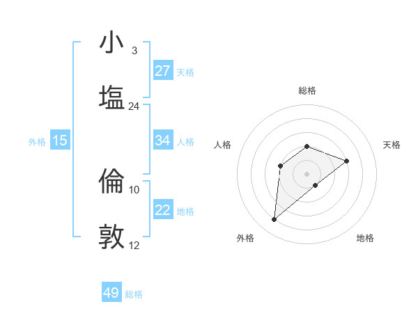 小塩 倫敦さんの総格は49画の2点!