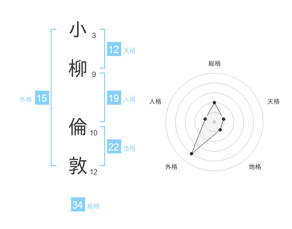 小柳 倫敦さんの総格は34画の2点!