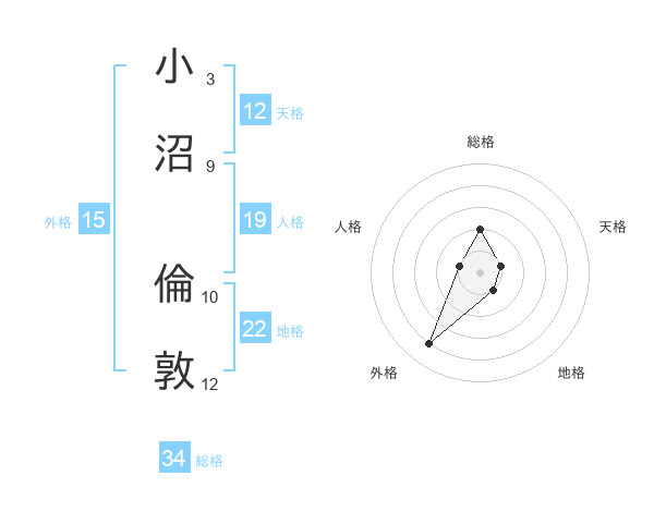 小沼 倫敦さんを姓名の画数から五運を鑑定