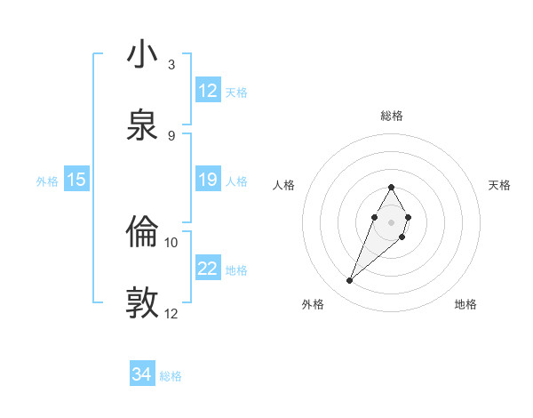 小泉 倫敦さんを姓名の画数から五運を鑑定