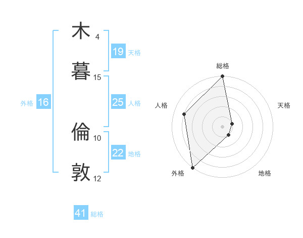 木暮 倫敦さんの総格は41画の5点!