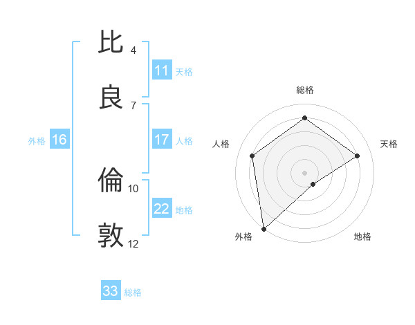 比良 倫敦さんを姓名の画数から五運を鑑定