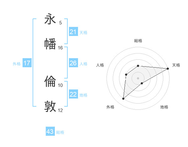 永幡 倫敦さんを姓名の画数から五運を鑑定