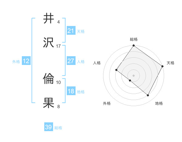 井沢 倫果さんの総格は39画の5点!