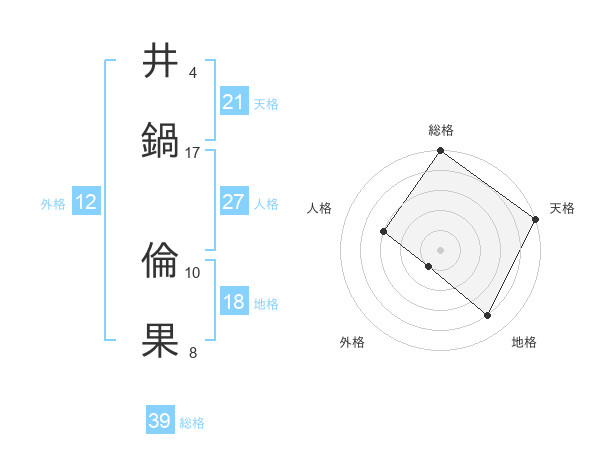 井鍋 倫果さんの総格は39画の5点!