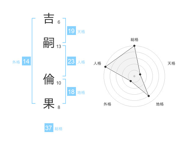 吉嗣 倫果さんの総格は37画の5点!