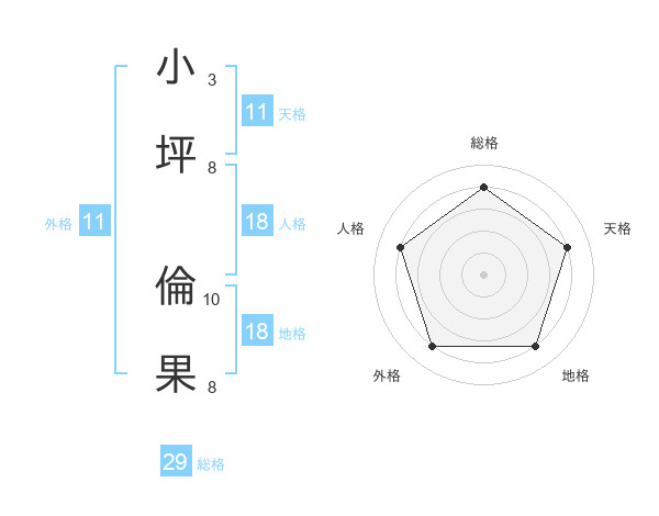 小坪 倫果さんの天格は11画の4点!