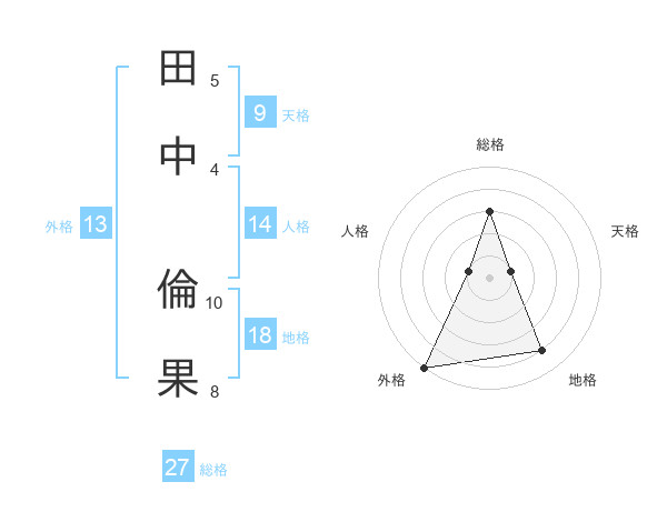 田中 倫果さんの総格は27画の3点!