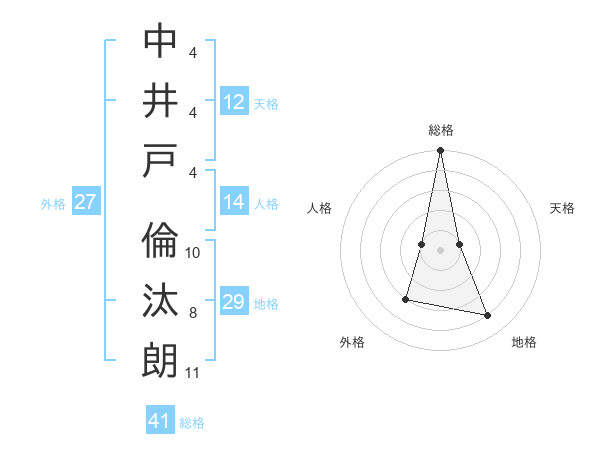 中井戸 倫汰朗さんの総格は41画の5点!