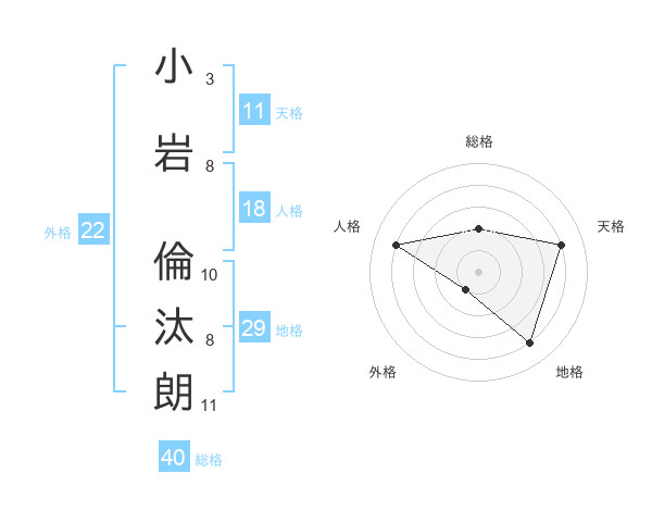 小岩 倫汰朗さんの外格は22画の1点!