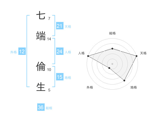 七端 倫生さんの天格は21画の5点!