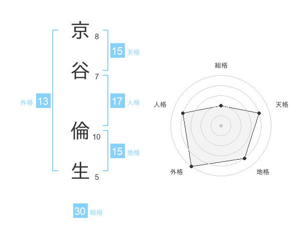 京谷 倫生さんの天格は15画の4点!