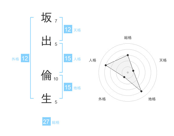 坂出 倫生さんを姓名の画数から五運を鑑定