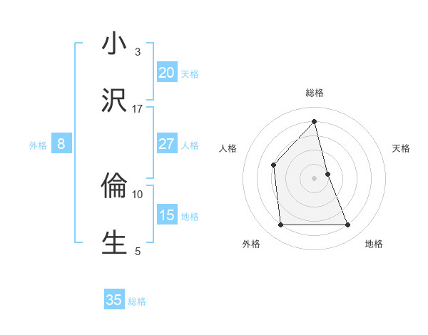 小沢 倫生さんの天格は20画の1点!