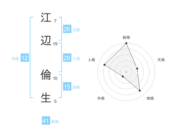 江辺 倫生さんの総格は41画の5点!