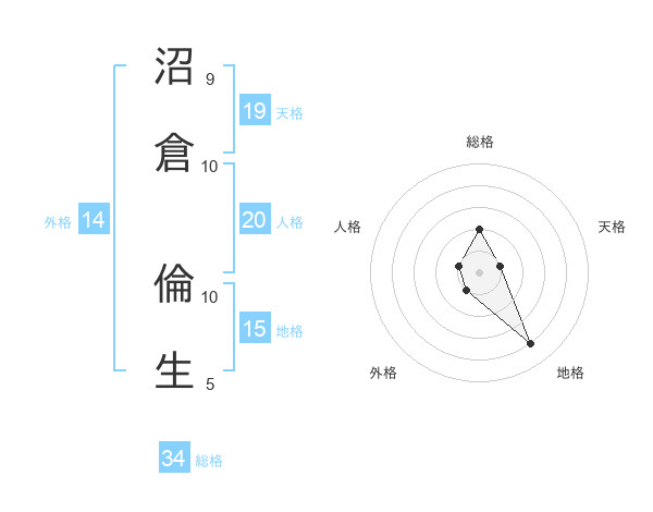 沼倉 倫生さんを姓名の画数から五運を鑑定