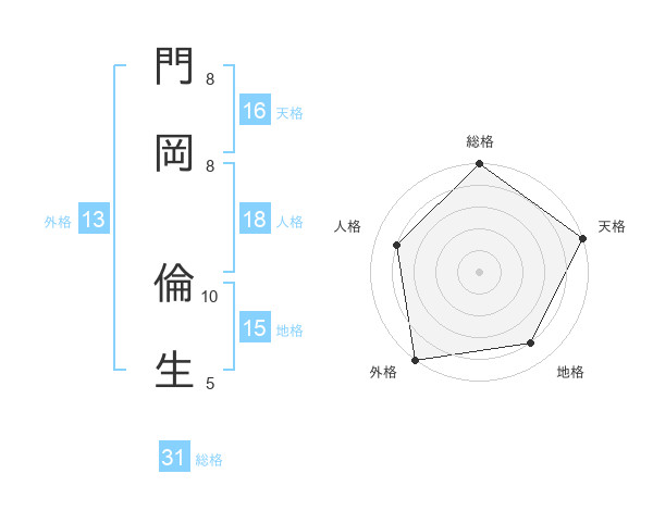 門岡 倫生さんを姓名の画数から五運を鑑定