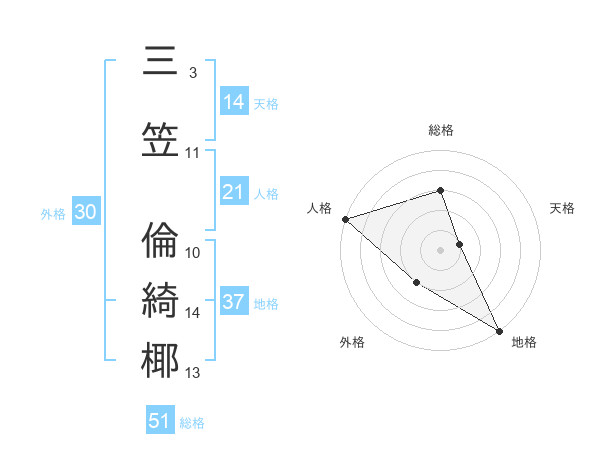 三笠 倫綺椰さんを姓名の画数から五運を鑑定