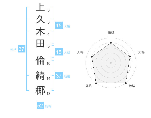 上久木田 倫綺椰さんの外格は37画の5点!