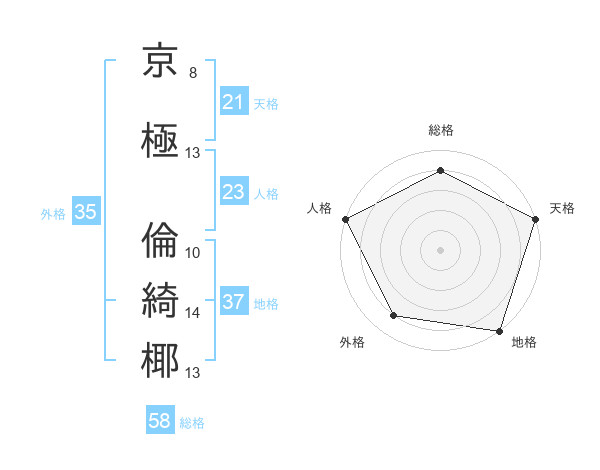 京極 倫綺椰さんを姓名の画数から五運を鑑定