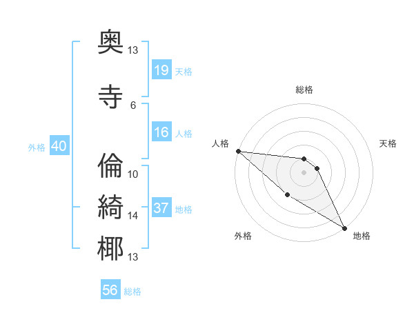 奥寺 倫綺椰さんの天格は19画の1点!