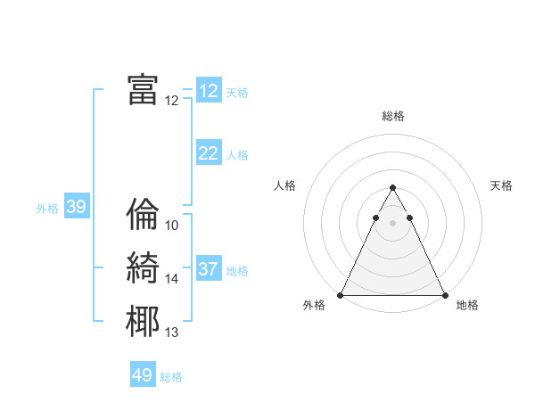 富 倫綺椰さんの天格は12画の1点!