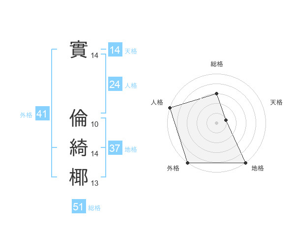 實 倫綺椰さんを姓名の画数から五運を鑑定