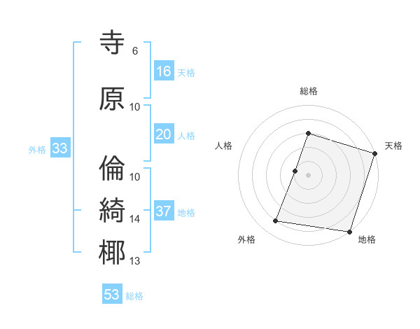 寺原 倫綺椰さんの総格は53画の3点!