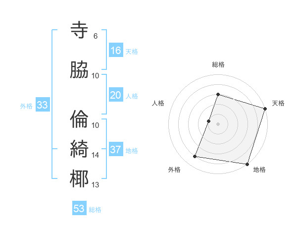 寺脇 倫綺椰さんの総格は53画の3点!
