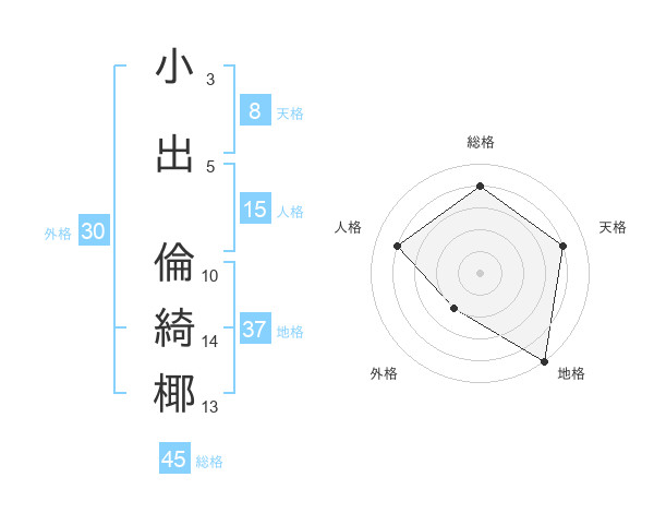 小出 倫綺椰さんを姓名の画数から五運を鑑定