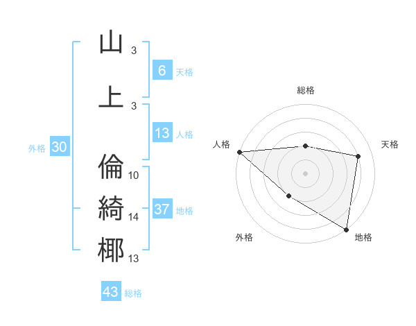 山上 倫綺椰さんを姓名の画数から五運を鑑定
