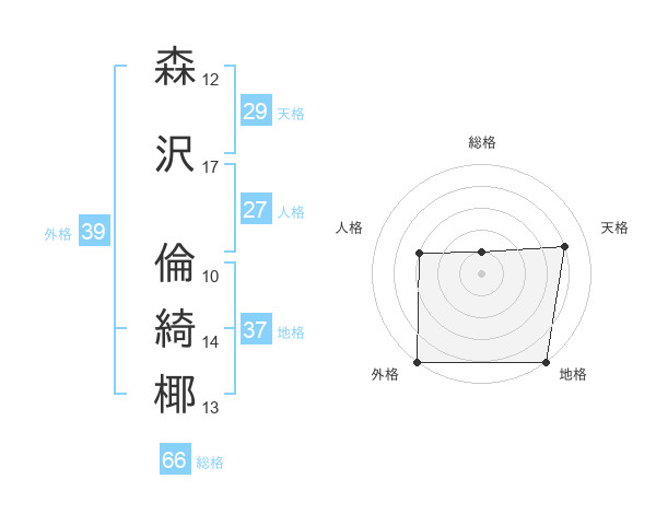 森沢 倫綺椰さんの総格は66画の1点!