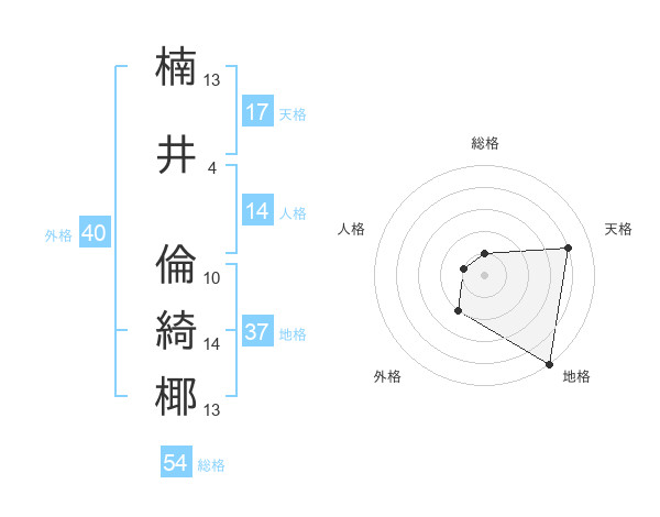 楠井 倫綺椰さんの天格は17画の4点!