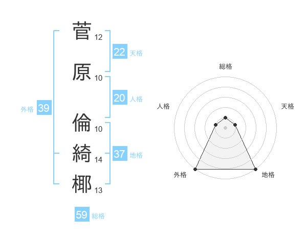 菅原 倫綺椰さんの天格は22画の1点!
