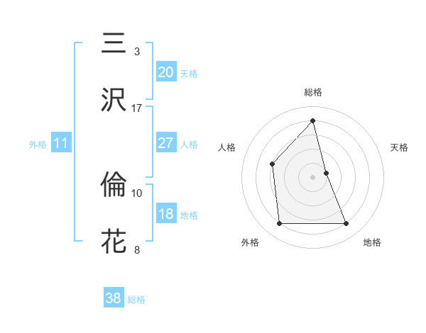 三沢 倫花さんを姓名の画数から五運を鑑定