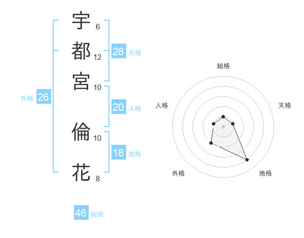 宇都宮 倫花さんを姓名の画数から五運を鑑定