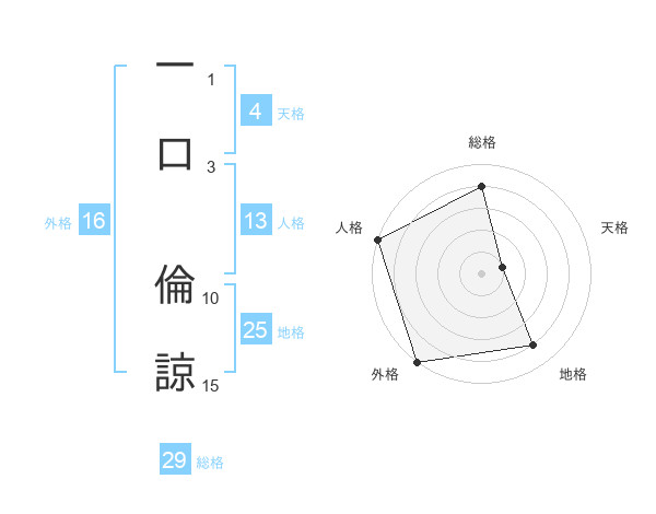 一口 倫諒さんを姓名の画数から五運を鑑定