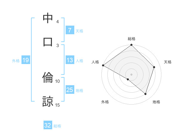 中口 倫諒さんの総格は32画の5点!