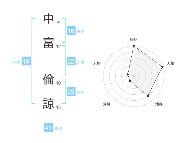 中富 倫諒さんを姓名の画数から五運を鑑定