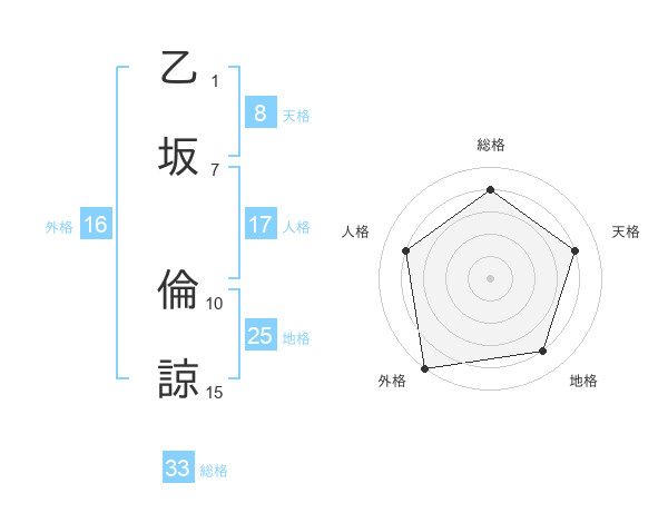 乙坂 倫諒さんを姓名の画数から五運を鑑定