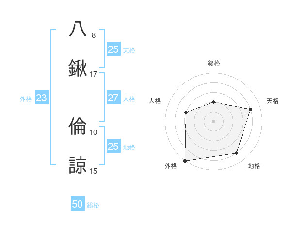 八鍬 倫諒さんの天格は25画の4点!