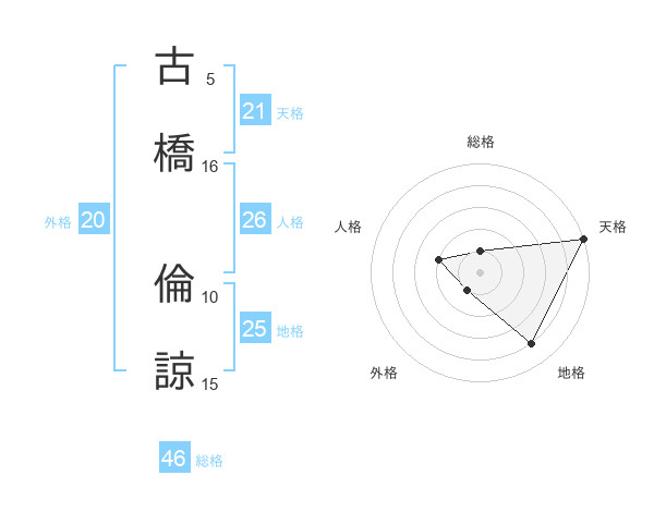 古橋 倫諒さんを姓名の画数から五運を鑑定
