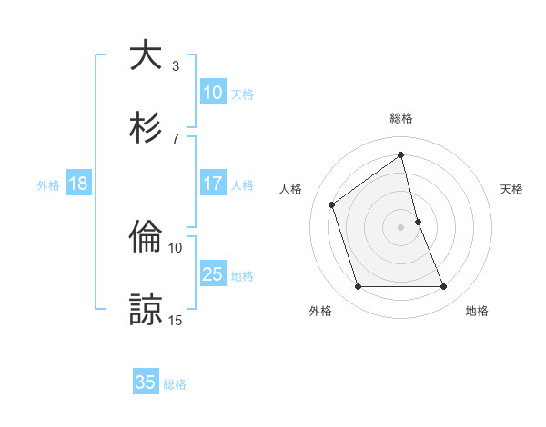 大杉 倫諒さんの総格は35画の4点!