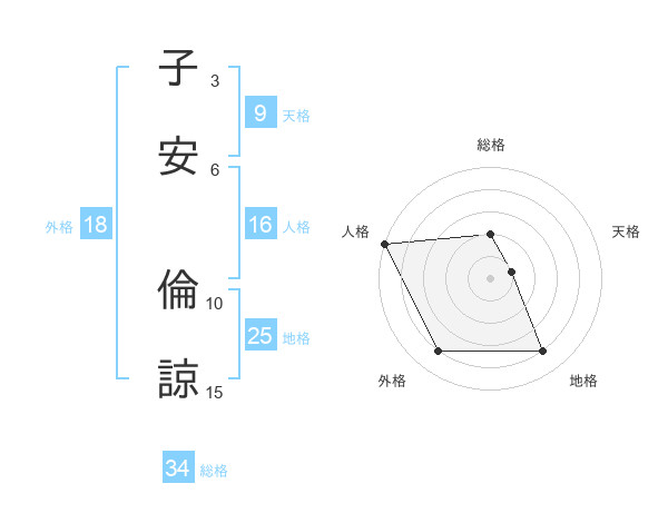 子安 倫諒さんの総格は34画の2点!