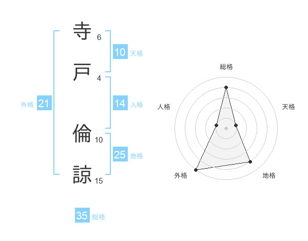 寺戸 倫諒さんの総格は35画の4点!